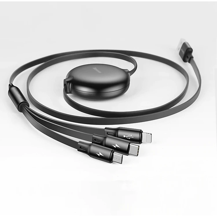 Cáp sạc đa năng Baseus 3 đầu Type C +Lightning+ Micro USB sạc nhanh 3.5A Golden Loop 3 in 1 Elastic 3.5A 1.2M - Hàng Chính Hãng