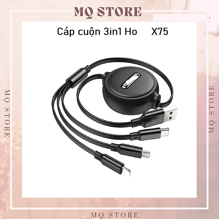Cáp sạc đa năng dây rút Ho. X75 3 in 1 dây dẹp chống đứt, độ dài 1 mét ( hàng chính hãng)