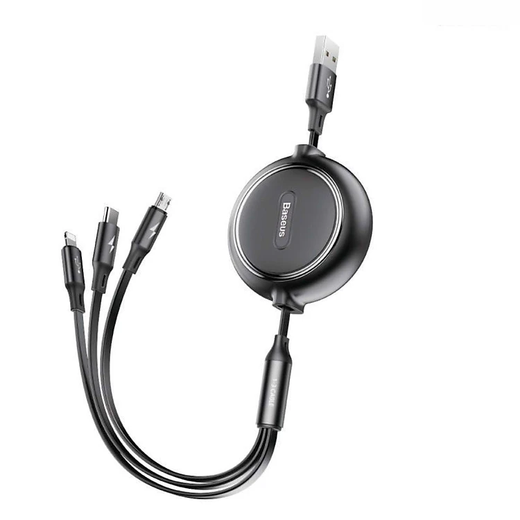 Cáp sạc dây rút 3 đầu Baseus Golden Loop 3 in 1 Elastic Cable CAMLT- hàng chính hãng