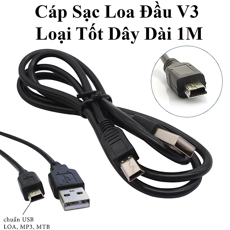 Cáp Sạc Loa Đầu V3 Loại Tốt Dây Dài 1M