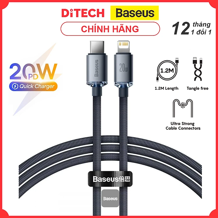 Cáp sạc nhanh 20W hiệu Baseus Crystal Shine Series Type-C to iPhone dài 1.2m / 2m - Hàng chính hãng