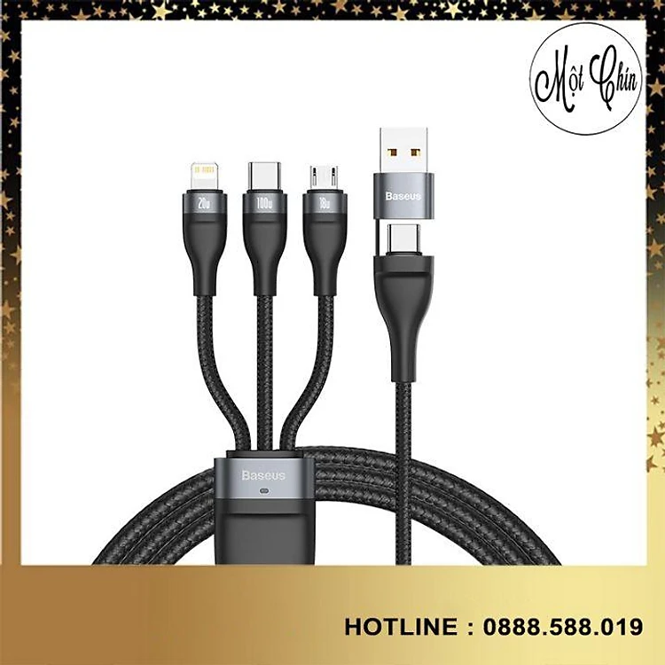 Cáp sạc nhanh 3 đầu Baseus Flash Series 3 in1 Plus (USB+ Type C to Micro + Type C, 100W Quick Charge and Data)
