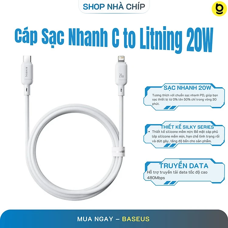 Cáp sạc nhanh Baseus Silky Series Fast Charging Cable Type-C to iP 20W- Hàng chính hãng