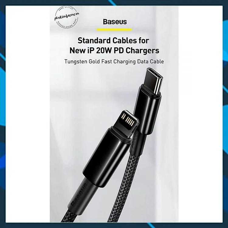 Cáp sạc nhanh C to Light- ning 20W Baseus Tungsten Gold Fast Charging Data Cable Type-C to iP PD 20W- Hàng chính hãng.
