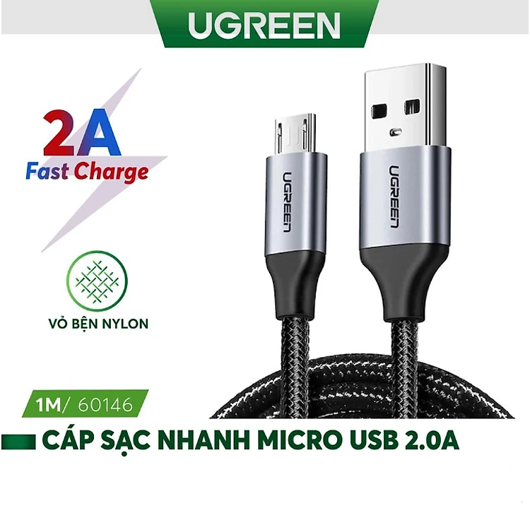 Cáp sạc nhanh Micro USB 2.0A Ugreen US290 độ dài từ 0.25m đến 2m, vỏ sợi bện siêu bền - Hàng chính hãng