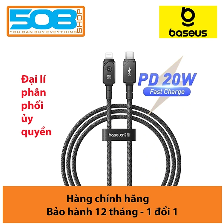 Cáp sạc nhanh, truyền dữ liệu PD 20W, Ba-se-us Unbreakable Series Fast Charging Cable Type C to Lai-nin PD 20W - Hàng chính hãng