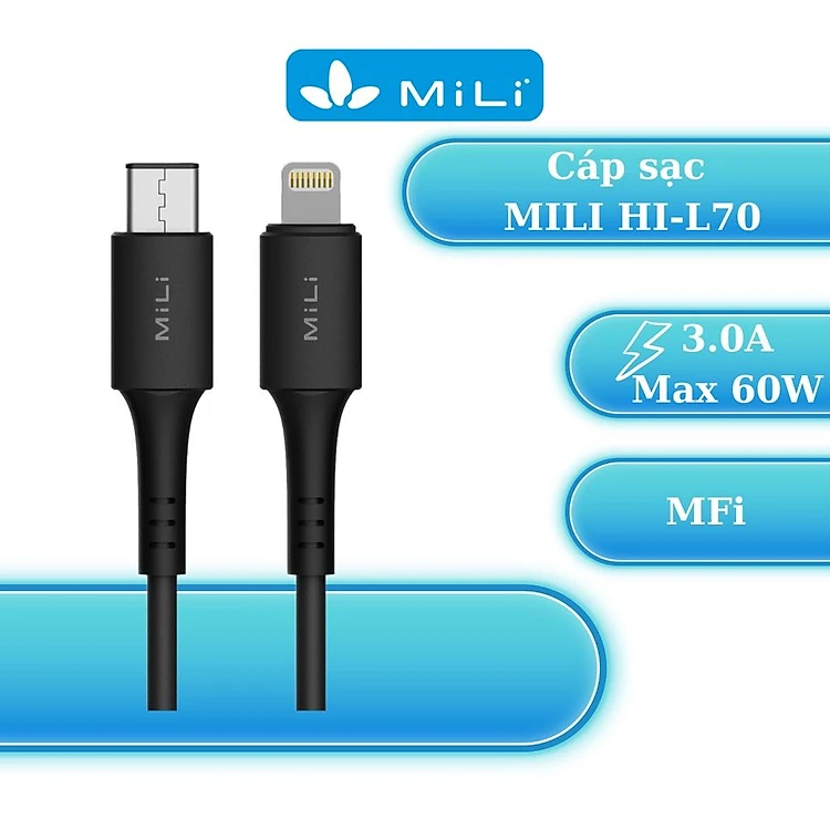 Cáp sạc nhanh type C - L MILI - PD 60W, dây sạc dài 1m - BẢO HÀNH CHÍNH HÃNG 2 Năm - HI-L70