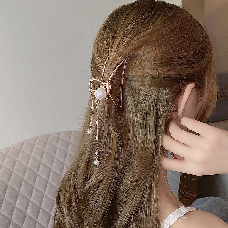 Cặp tóc càng cua mix ngọc trai nữ tính phong cách Hàn Quốc