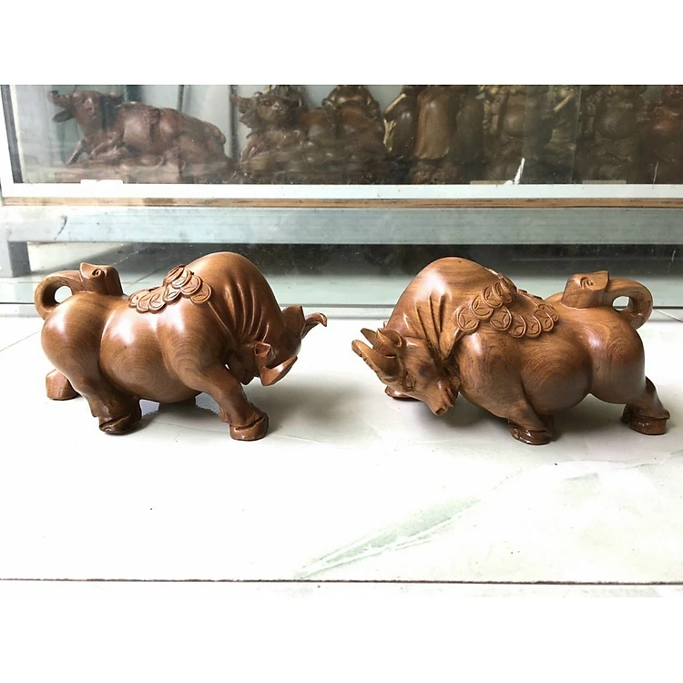 Cặp tượng bò tót bằng gỗ bách xanh thơm nức kt 15×8×8cm