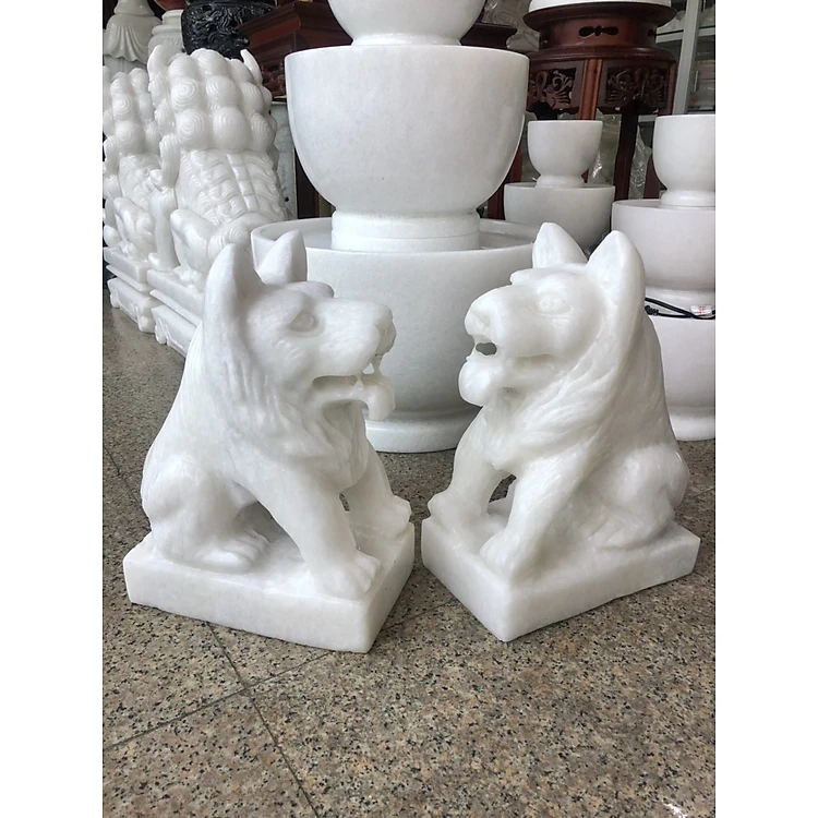 Cặp tượng chó đá phong thủy đá cẩm thạch trắng gác cổng - Cao 30 cm