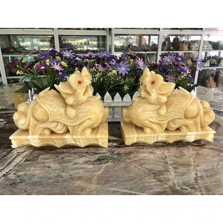 Cặp Tỳ Hưu phong thủy đá ngọc hoàng long có đế - Dài 20 cm