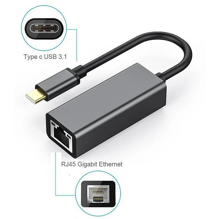 Cáp USB Type-C to Lan Gigabit kết nối mạng internet cho Máy tính, Điện thoại