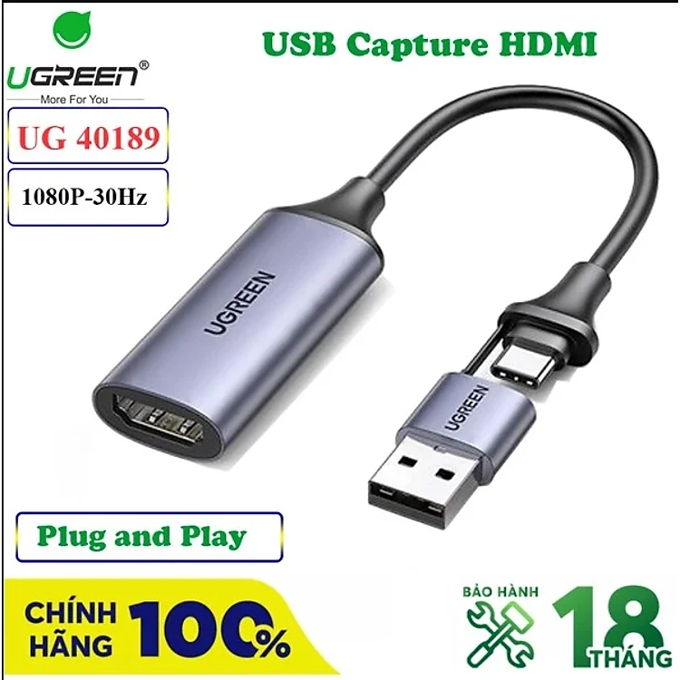 Card ghi hình HDMI sang USB 2.0, Type C live streaming 1080P Ugreen 40189 - Hàng chính hãng