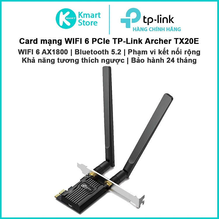Card mạng WIFI 6 AX1800 Archer TX20E | Chuẩn PCIe | Bluetooth 5.2 | Phạm vi kết nối tín hiệu rộng | Bảo hành 2 năm | Hàng Chính Hãng