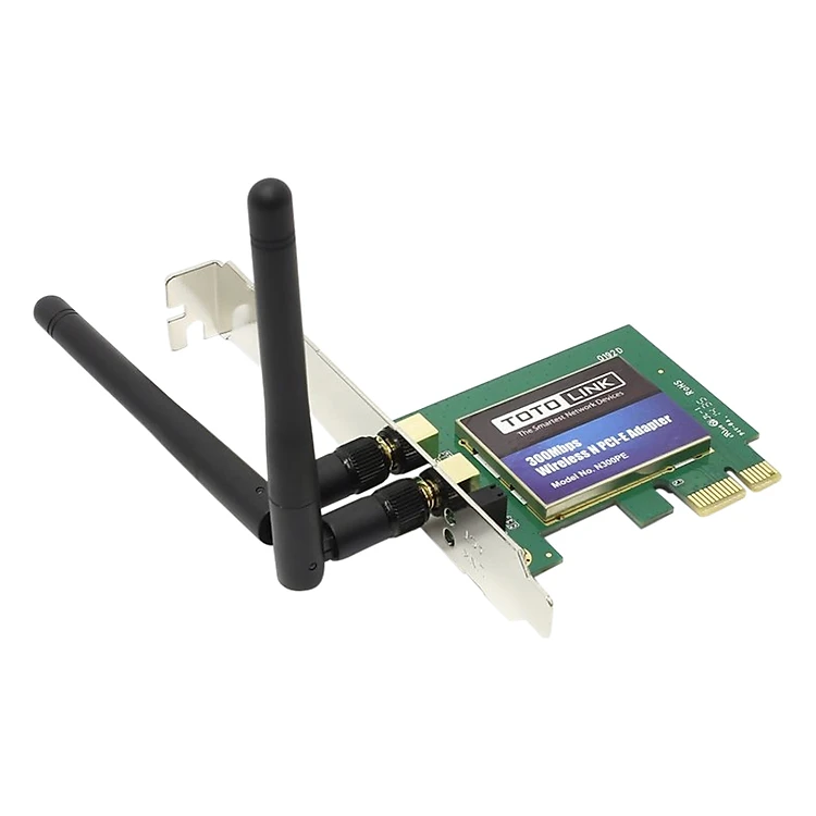Card Mạng Wifi Totolink N300PE là card mạng Wi-Fi PCI-E tương thích chuẩn IEEE802.11n với tốc độ tối đa 300Mbps. Công nghệ MIMO giúp tăng độ ổn định truyền tải tín hiệu.