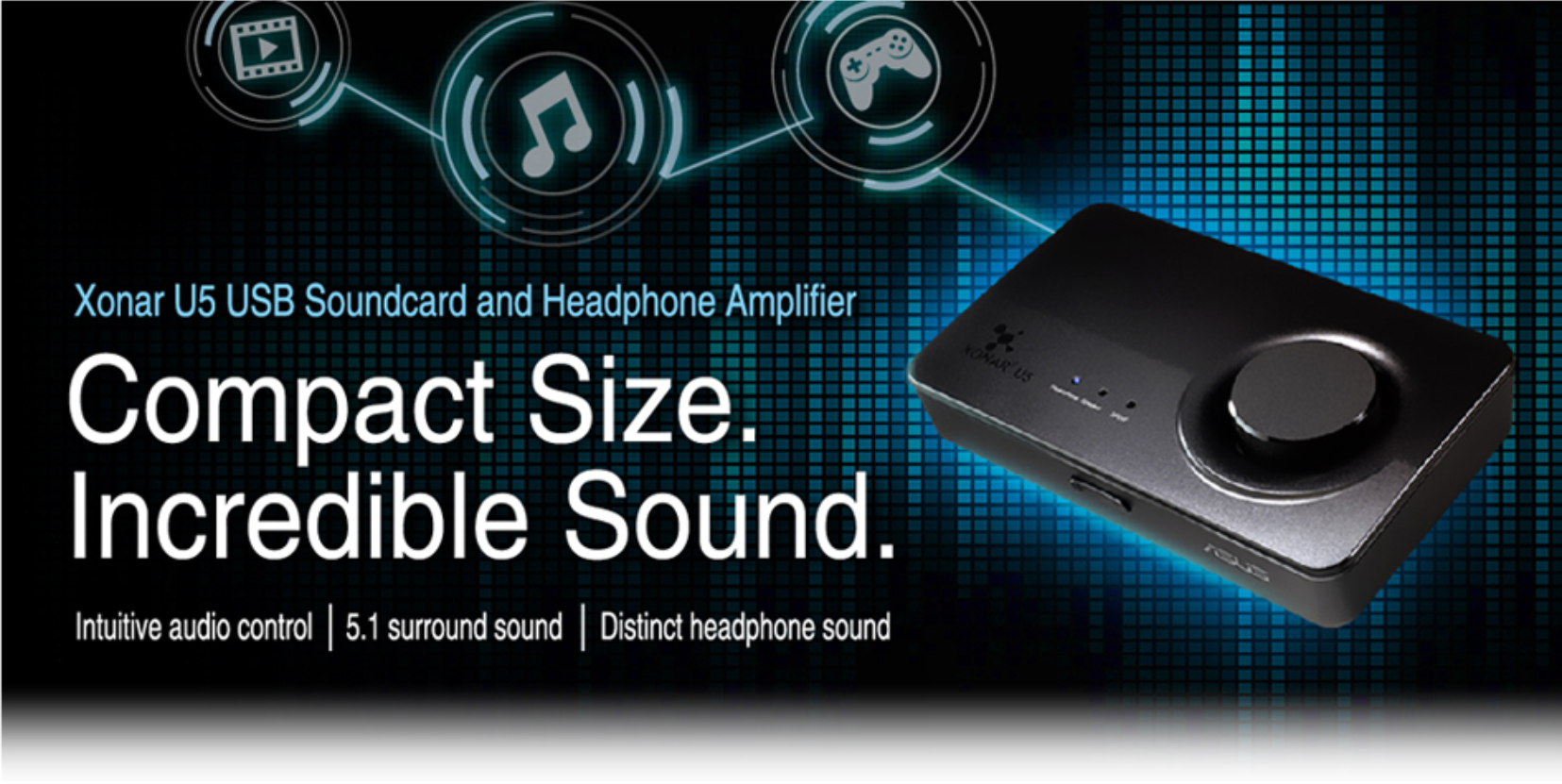 Xonar U5 là một card âm thanh USB 5.1 kênh nhỏ gọn được thiết kế để cung cấp cho các game thủ PC âm thanh chất lượng cao cho các trò chơi, âm nhạc và phim ảnh. Nó đi theo bước chân của Xonar U7 từng đoạt giải thưởng - cung cấp cho bạn âm thanh mạnh mẽ và rõ ràng thông qua tai nghe, và tạo ra âm thanh chi tiết và mạnh mẽ hơn so với phần cứng trên bo mạch. Xonar U5 không có nguồn điện độc lập và kết nối với PC thông qua USB, cho phép bạn cắm ngay lập tức mà không cần phải mở vỏ PC.