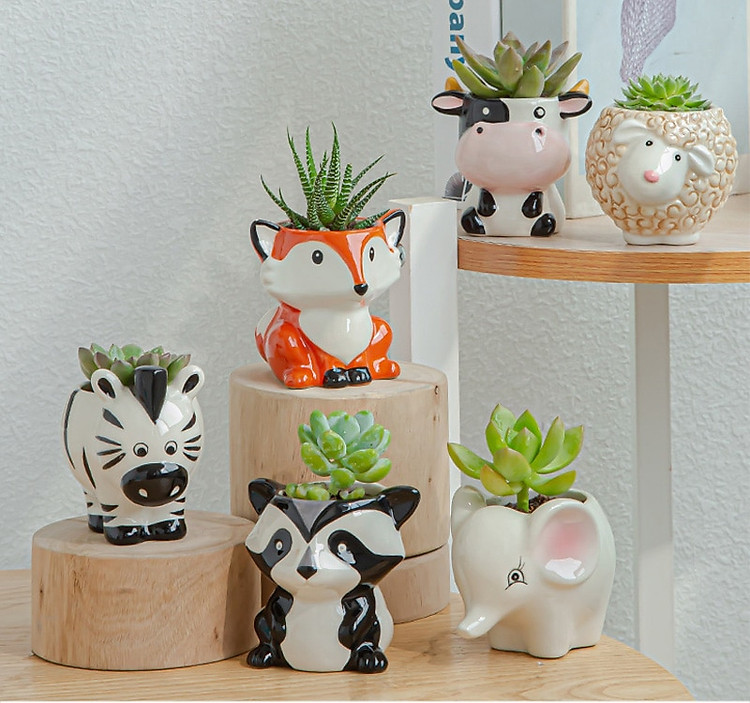 Cartoon Animal Miniature Model Decoration Succulent Flower Pot Creative Home Gardening Plants Potted Ceramic Flowerpots Ornament