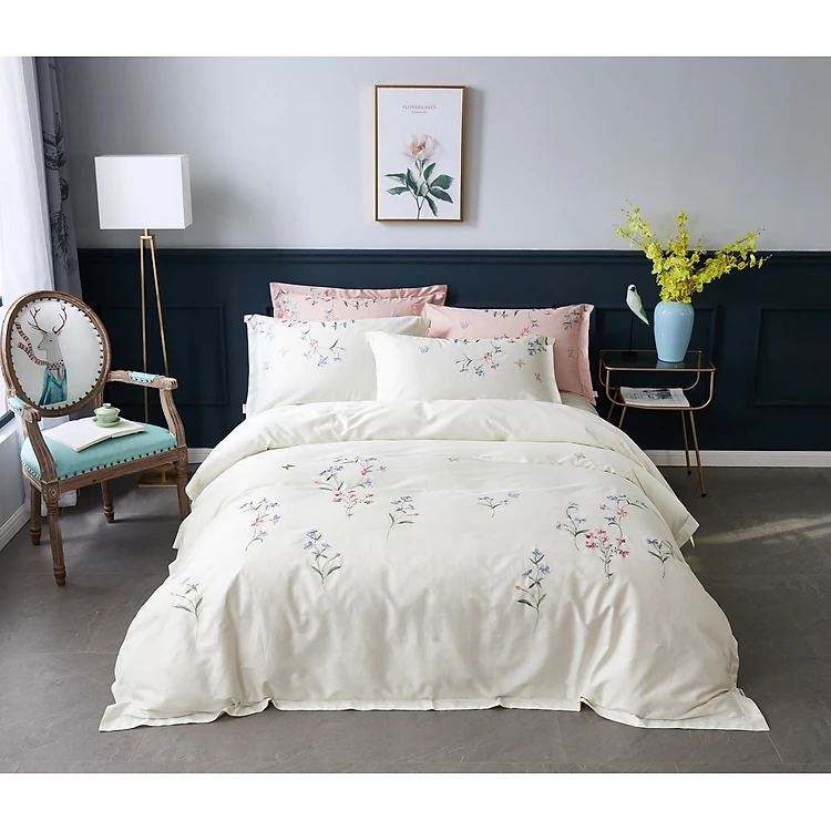 Bộ chăn ra Casa Bello Home- Set Misha lụa satin thêu họa tiết thêu 5 món