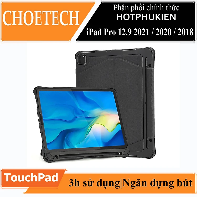 Case bao da bàn phím không dây Bluetooth cho iPad Pro 12.9 2021 Chip M1 / 2020 / 2018 có ngăn đựng bút hiệu CHOETECH BH-010 (cảm ứng mượt mà, gập nhiều hướng, trang bị bàn phím bấm) - hàng nhập khẩu