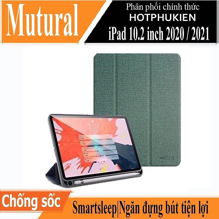 Case bao da chống sốc canvas cho iPad 10.2 inch 2020 / 2021 hiệu Mutural Yashi Series trang bị ngăn đựng bút, thiết kế tản nhiệt, hỗ trợ smartsleep - hàng nhập khẩu