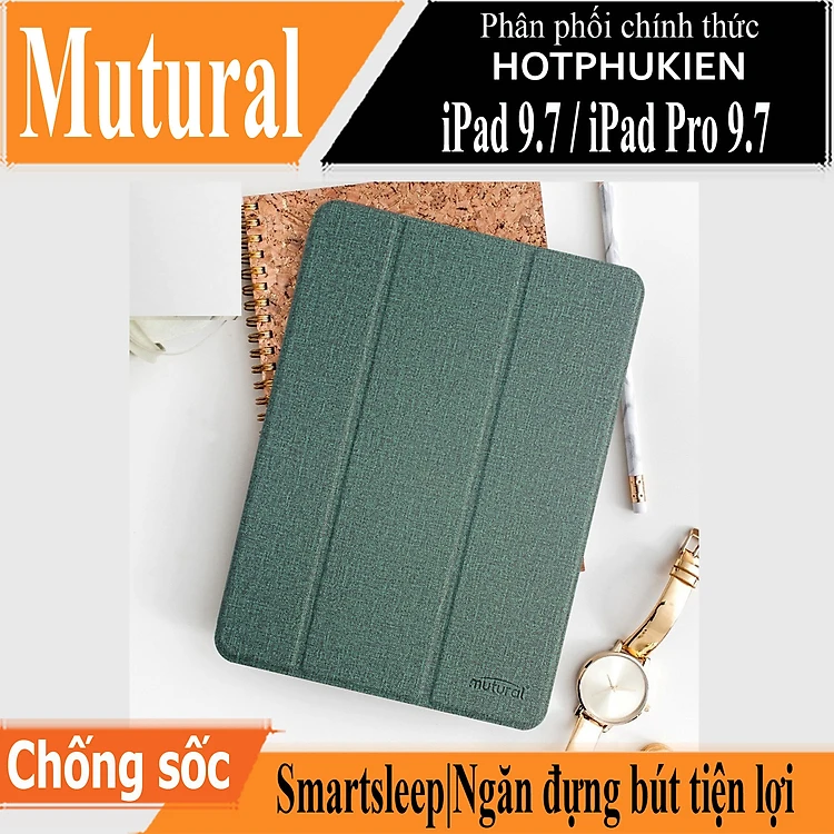 Case bao da chống sốc canvas cho iPad 9.7 inch 2017 / 2018 / iPad Pro 9.7 inch hiệu Mutural Yashi Series trang bị ngăn đựng bút, thiết kế tản nhiệt, hỗ trợ smartsleep - hàng nhập khẩu