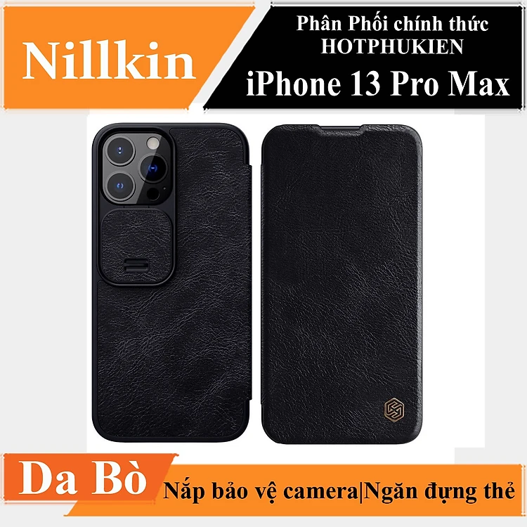 Case bao da chống sốc cho iPhone 13 Pro Max trang bị nắp bảo vệ Camera hiệu Nillkin Qin Pro (ngăn đựng thẻ ATM Name Card, chất liệu da thật cao cấp, thiết kế thời trang cá tính) - hàng nhập khẩu