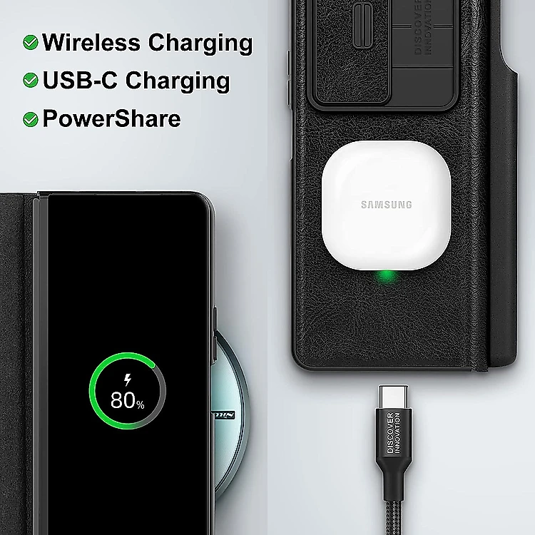 Case bao da chống sốc cho Samsung Galaxy Z Fold 4 trang bị nắp bảo vệ Camera và ngăn đựng S-Pen hiệu Nillkin Qin Pro (chất liệu da cao cấp, thiết kế thời trang cá tính) - Hàng nhập khẩu