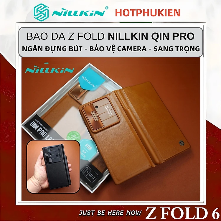 Case bao da chống sốc cho Samsung Galaxy Z Fold 6 trang bị nắp bảo vệ Camera và ngăn đựng S-Pen và khe nhét thẻ card hiệu Nillkin Qin Pro (chất liệu da cao cấp, thiết kế thời trang cá tính) - Hàng nhập khẩu