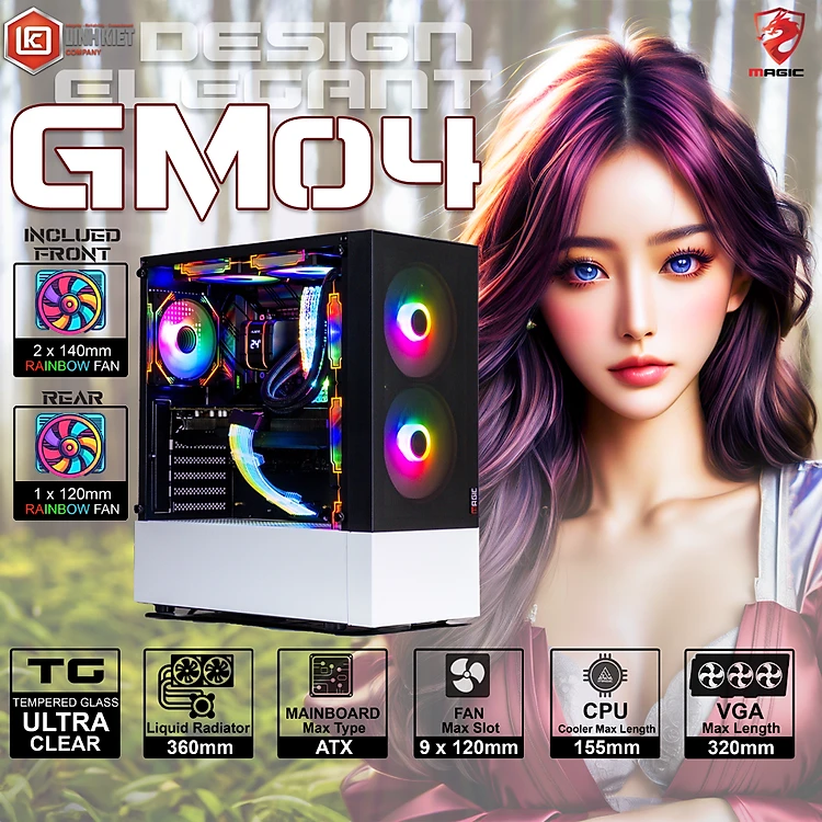 CASE MAGIC GM-04 BLACK AND WHITE GLASS 3 FAN (ATX) - Hàng chính hãng
