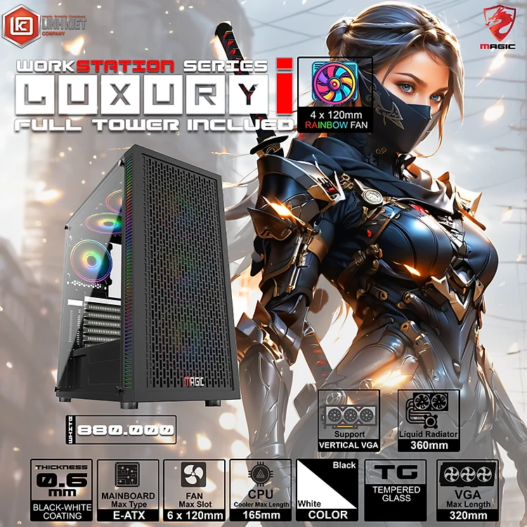 CASE MAGIC LUXURY i FULL TOWER SẴN 4FAN (E-ATX) - Hàng chính hãng
