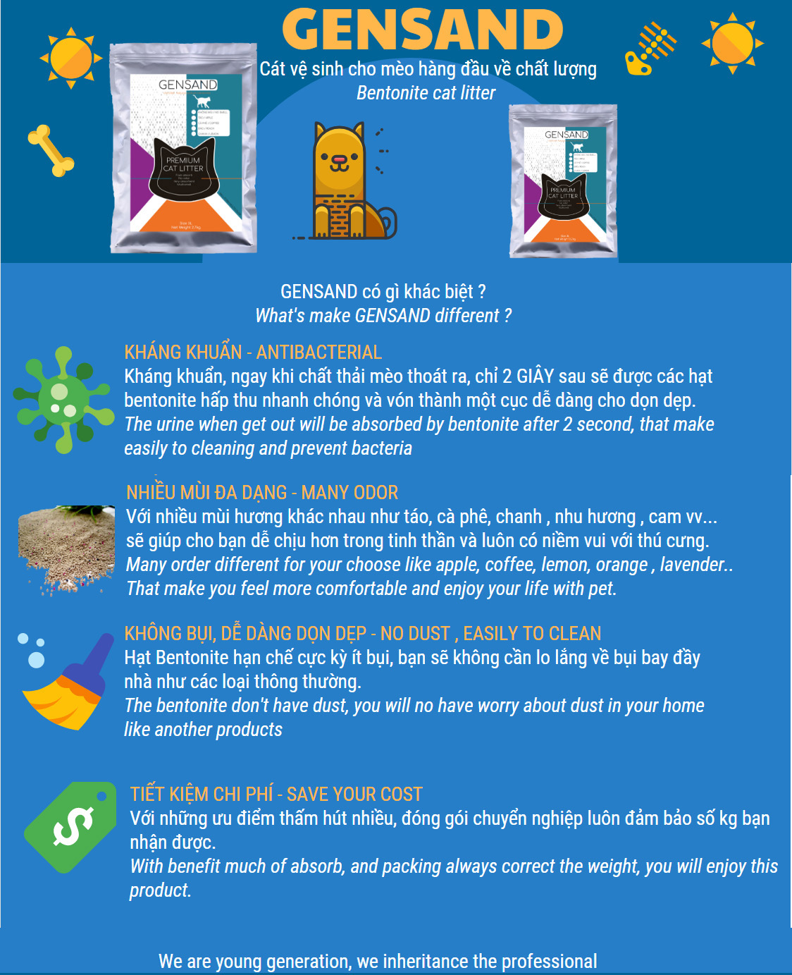 • Cát Vệ Sinh Cho mèo Gensand  sẽ giúp bạn giữ cho khay khô và ngăn vi khuẩn phát triển,