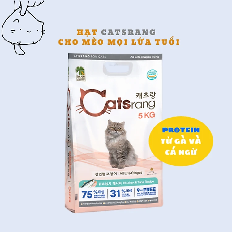 Thức Ăn Hạt Catsrang Cho Mèo Mọi Lứa Tuổi - 5Kg là một trong những sản phẩm ưu chuộng trên thị trường thức ăn dành cho thúcưng tại Việt Nam. Thiết kế hộp tiện lợi, sạch sẽ, dễ sử dụng catsrang đang là “top” những sản phẩm bán chạy nhất.