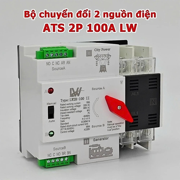 Cầu Dao Đảo Chiều Tự Động 100A – Không Mất Điện Khi Chuyển Nguồn, Dùng Cho 2 Công Tơ