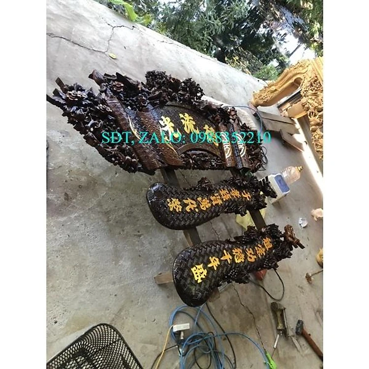 câu đối đôi bầu gỗ mít phun màu đen đậm