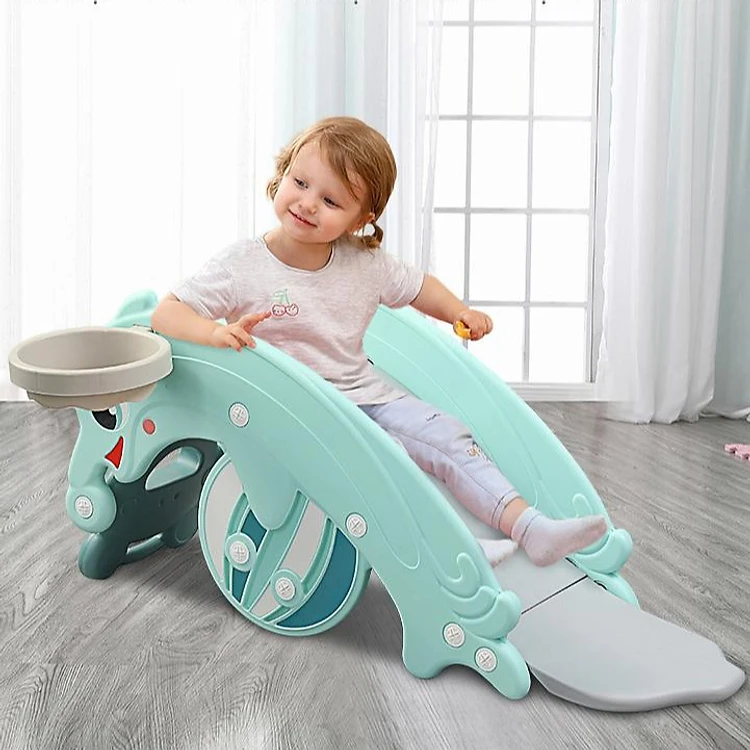 Cầu trượt bập bênh hình cá heo Holla 2020 thiết kế 3in1 Ếch bập bênh- Cầu trượt cá heo- Cột bóng rổ cho bé thỏa sức vận động chỉ trong 1 sản phẩm