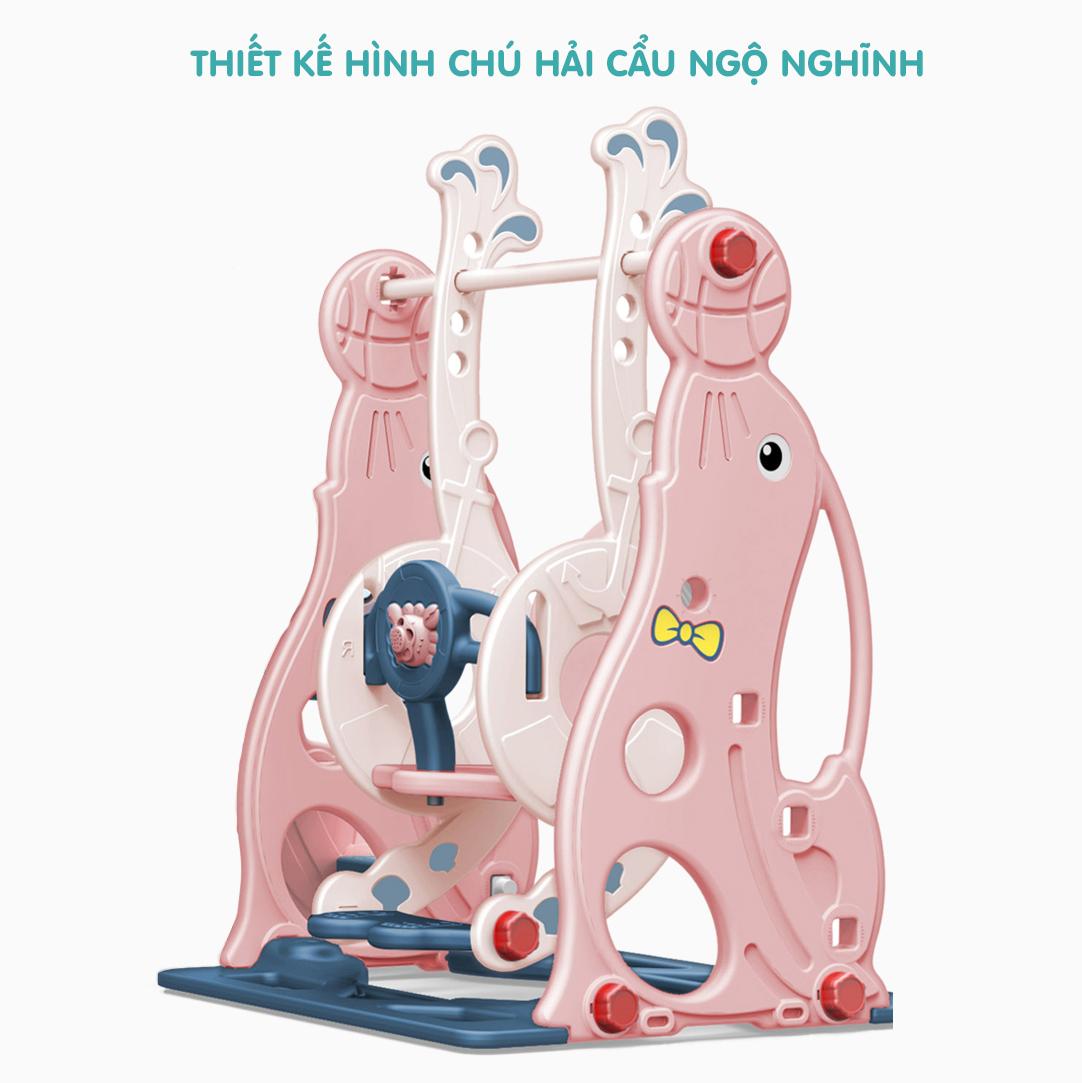 Cầu trượt xích đu hải cẩu Holla 2020: Cầu trượt, xích đu, bóng rổ cho bé vận động, chất liệu nhựa nguyên sinh an toàn cho bé