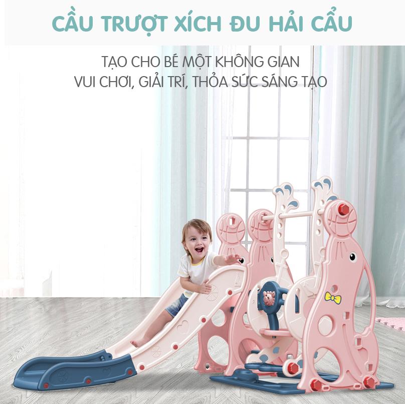 CẦU TRƯỢT XÍCH ĐU HẢI CẨU HOLLA 2020: CẦU TRƯỢT, XÍCH ĐU, BÓNG RỔ CHO BÉ VẬN ĐỘNG, CHẤT LIỆU NHỰA NGUYÊN SINH AN TOANG CHO BÉ