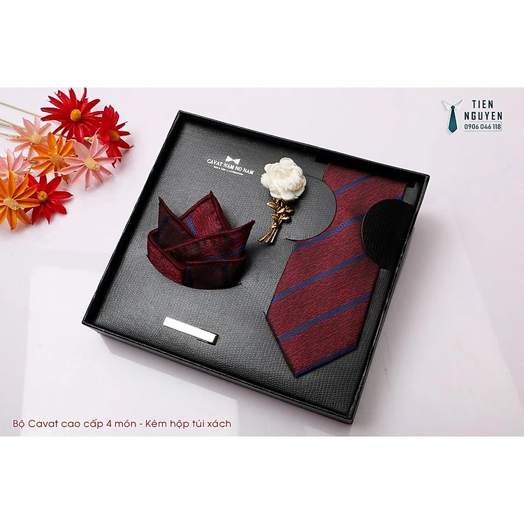 Cavat Bộ Cao Cấp Hàn Quốc 4 món Phụ Kiện - Full box kèm túi xách, màu đỏ kẻ