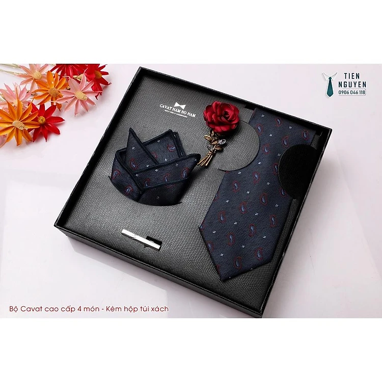 Cavat Bộ Cao Cấp Hàn Quốc 4 món Phụ Kiện - Full box kèm túi xách, xám ối họa tiết