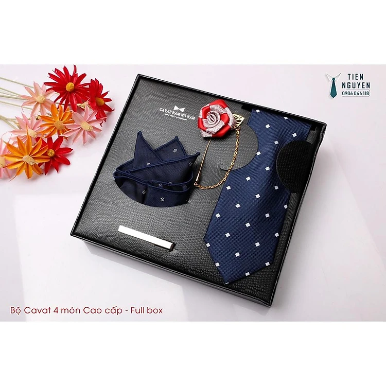 Cavat Bộ Cao Cấp Hàn Quốc 4 món Phụ Kiện - Full box kèm túi xách, xanh đen chấm