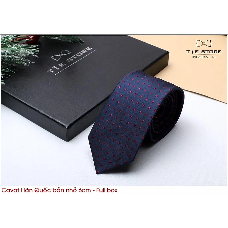 Cavat Chú rể màu xanh đen chấm bi, công sở, kiểu dáng Hàn Quốc cao cấp bản nhỏ 6cm - Tie store
