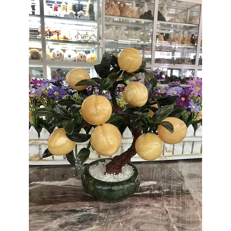 Cây Đào phong thủy đá ngọc hoàng long 9 quả trang trí bàn làm việc, phòng khách - Cao 30 cm