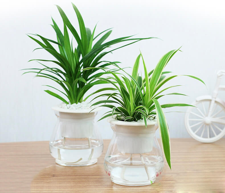 - Bạn có thể đặt một chậu cây nhện ở trên nóc tủ, để nó rủ xuống tự nhiên, đến khi cành rủ có độ dài nhất định thì có thể cuốn nó lại thành vòng trong, tạo hình như một tác phẩm điêu khắc tuyệt đẹp.