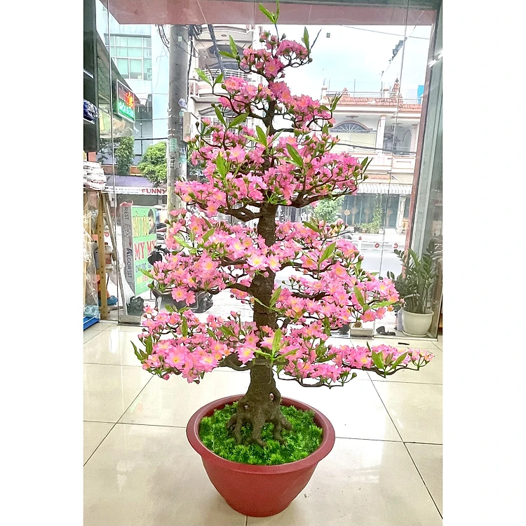 Cây Hoa Đào Bonsai Nhựa Cao 115 cm Chậu Hoa Đào Trang Trí Tết