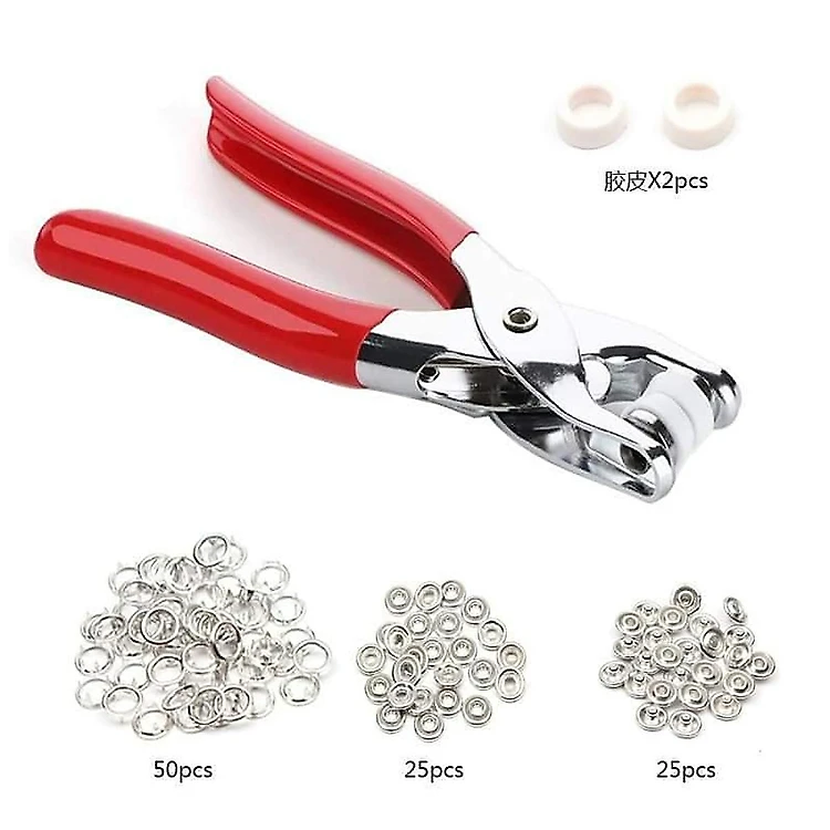 Cây Kìm Bấm Cúc Vành Áo Kim Loại Đa Năng Bộ Kìm Bấm Khuy Kèm 100 Cúc Bấm 9.5mm, Khoen Quần Áo Tiện Lợi