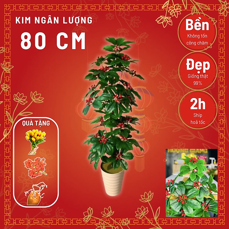 Cây kim ngân lượng giả - Size 80cm - Kèm chậu nhựa phủ rêu - Cây giả, hoa lụa trang trí nhà cửa