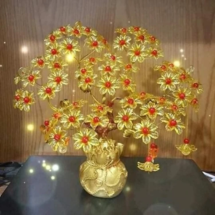 Cây kim tiền phát tài phát lộc đế túi vàng 7 cành trang trí phòng khách bàn thờ