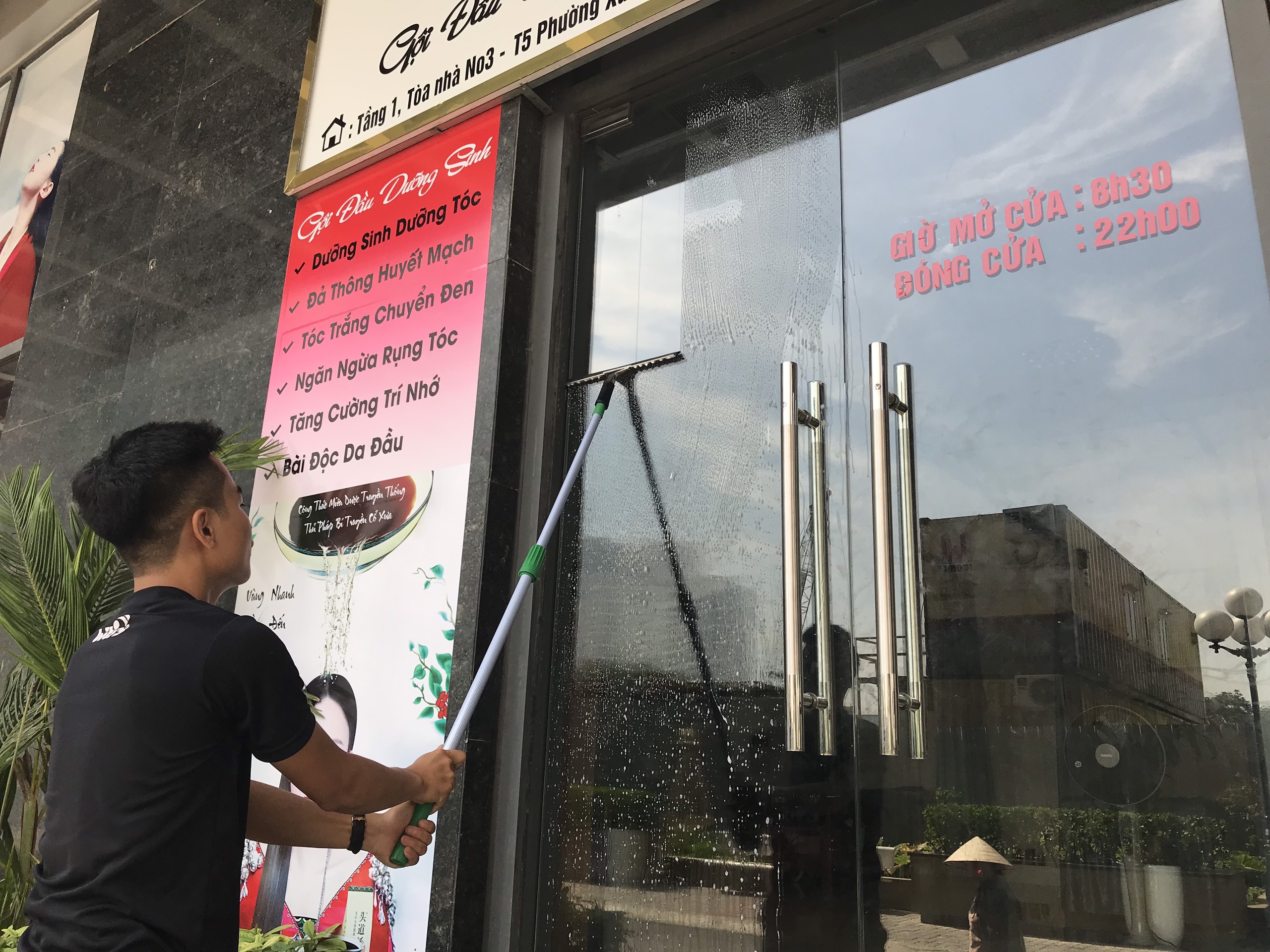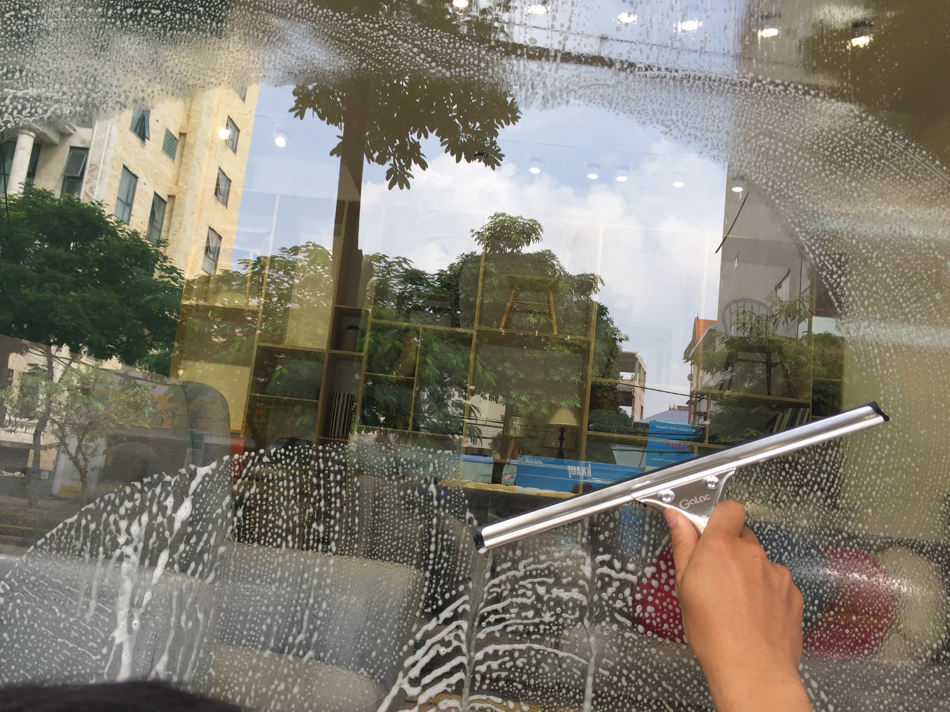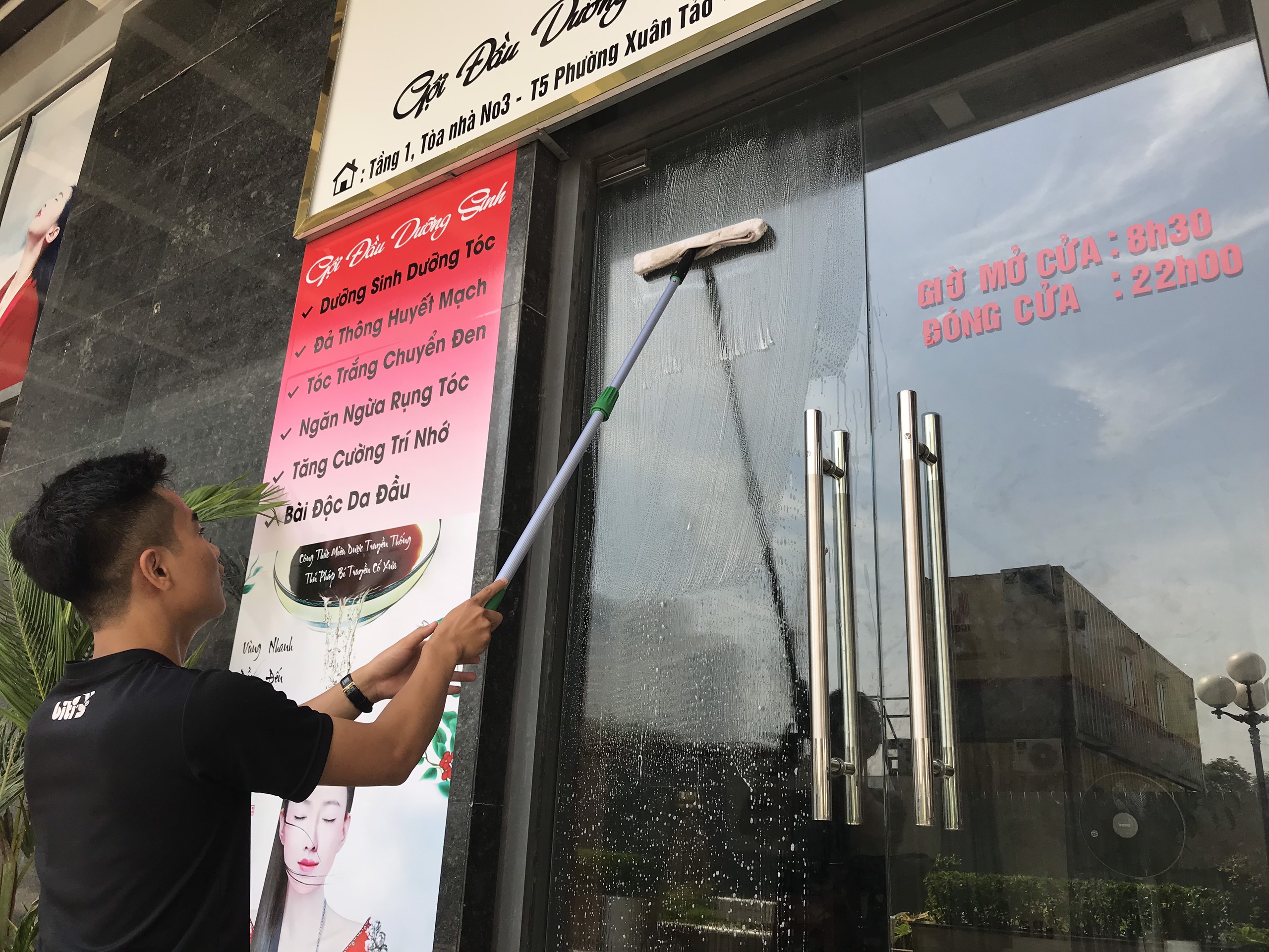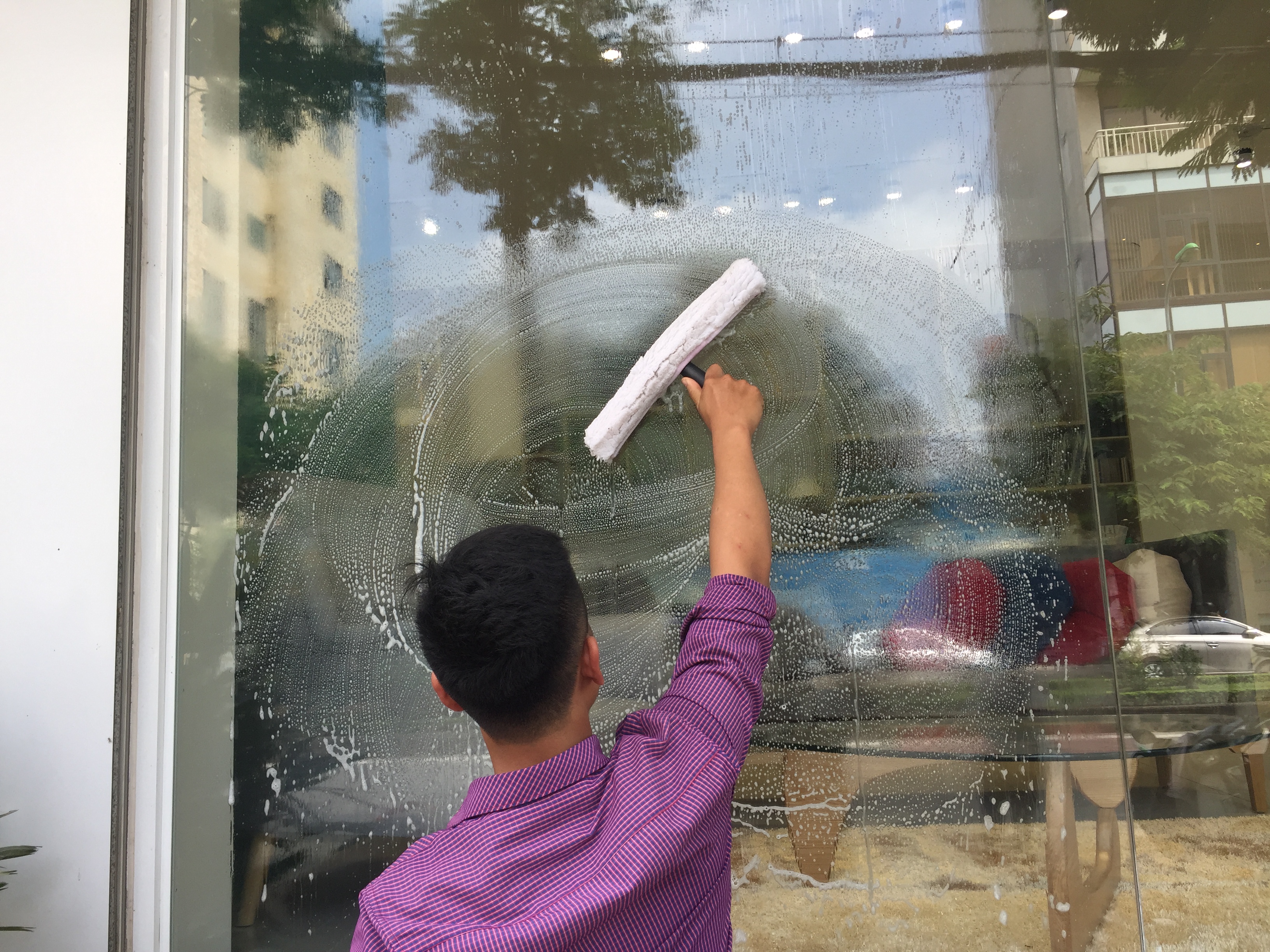 Giúp lau cửa kính dưới 3m sạch bóng