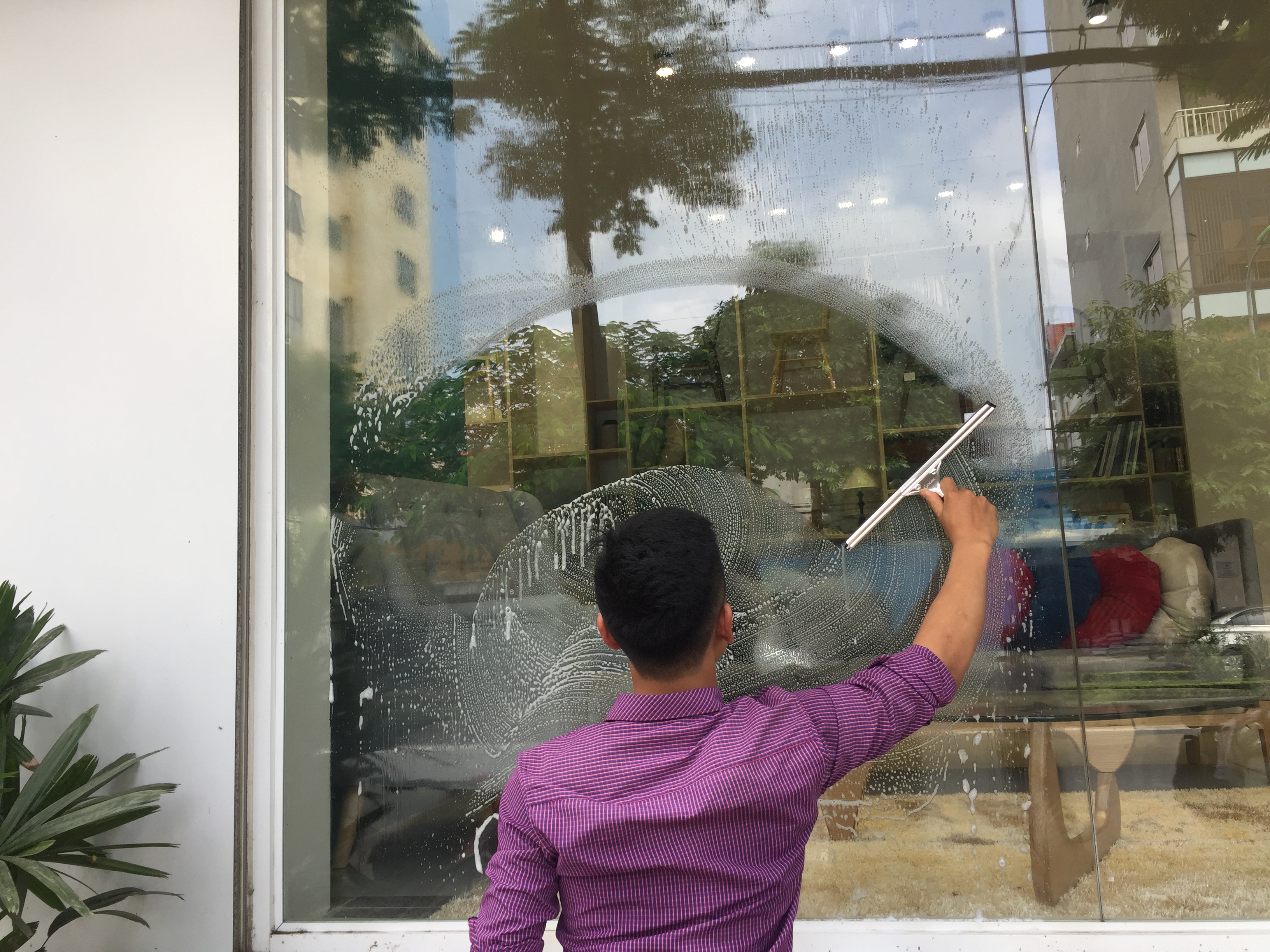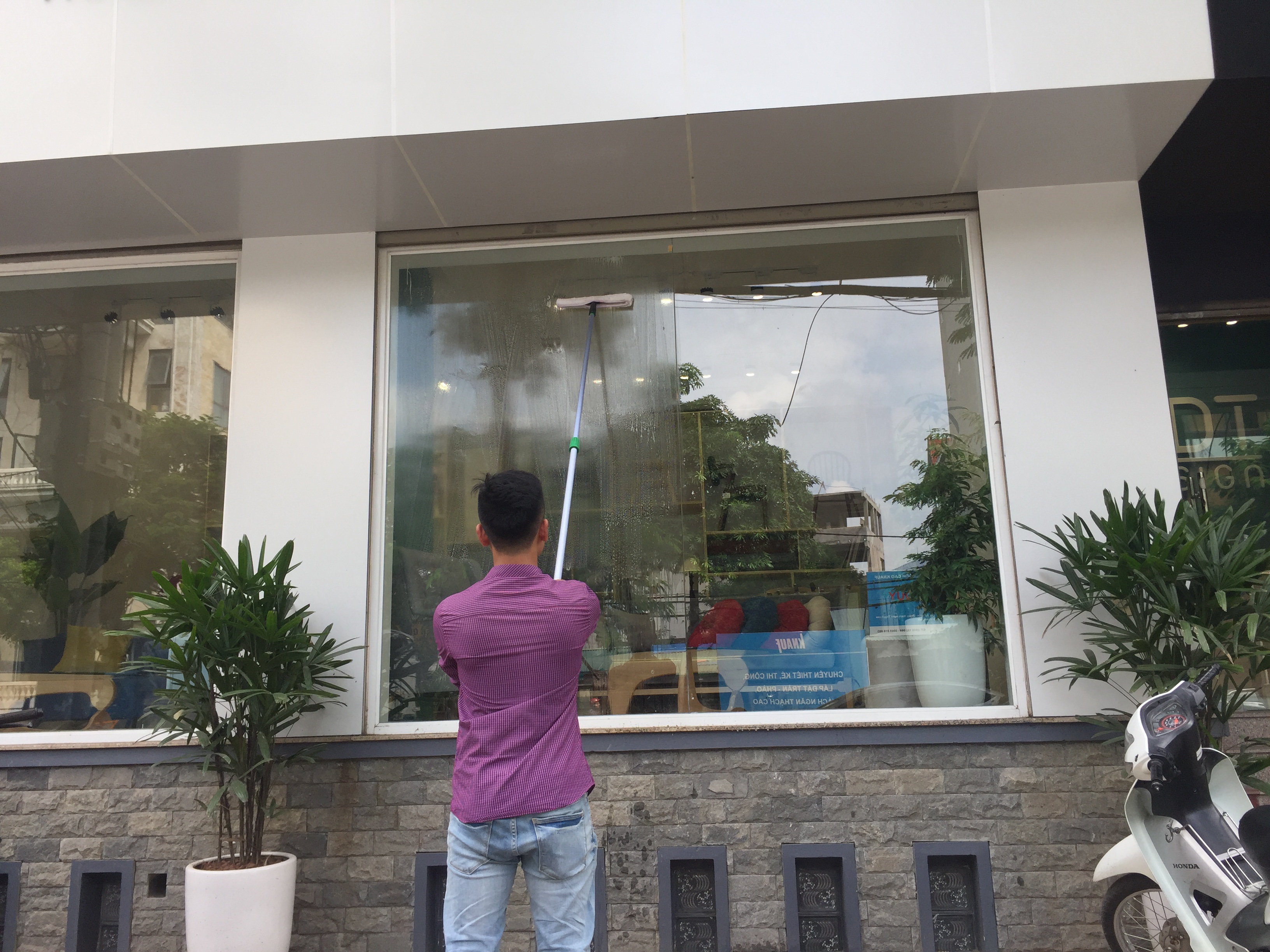 Giúp lau cửa kính dưới 4m sạch bóng