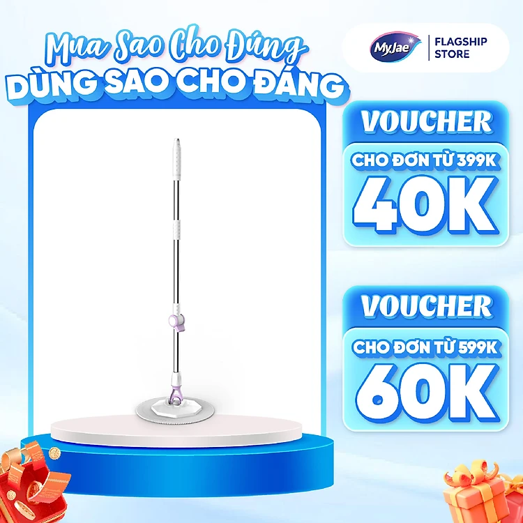 Cây Lau Nhà Đơn MyJae Sợi Microfiber Xoay 360 Độ Phù Hợp Cho Nhiều Loại Thùng Lau 134cm